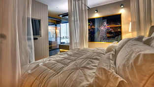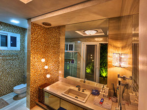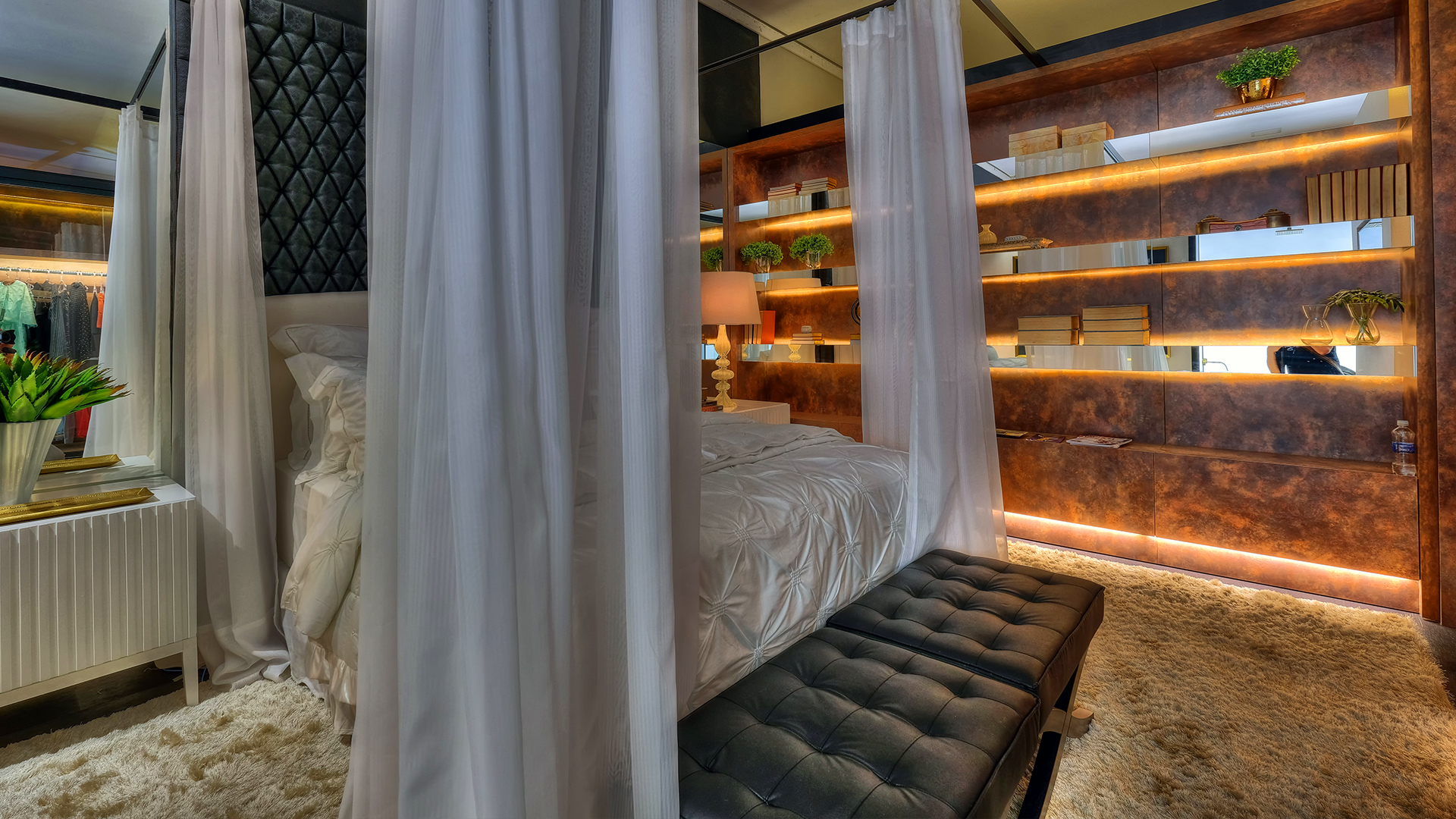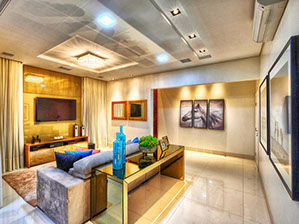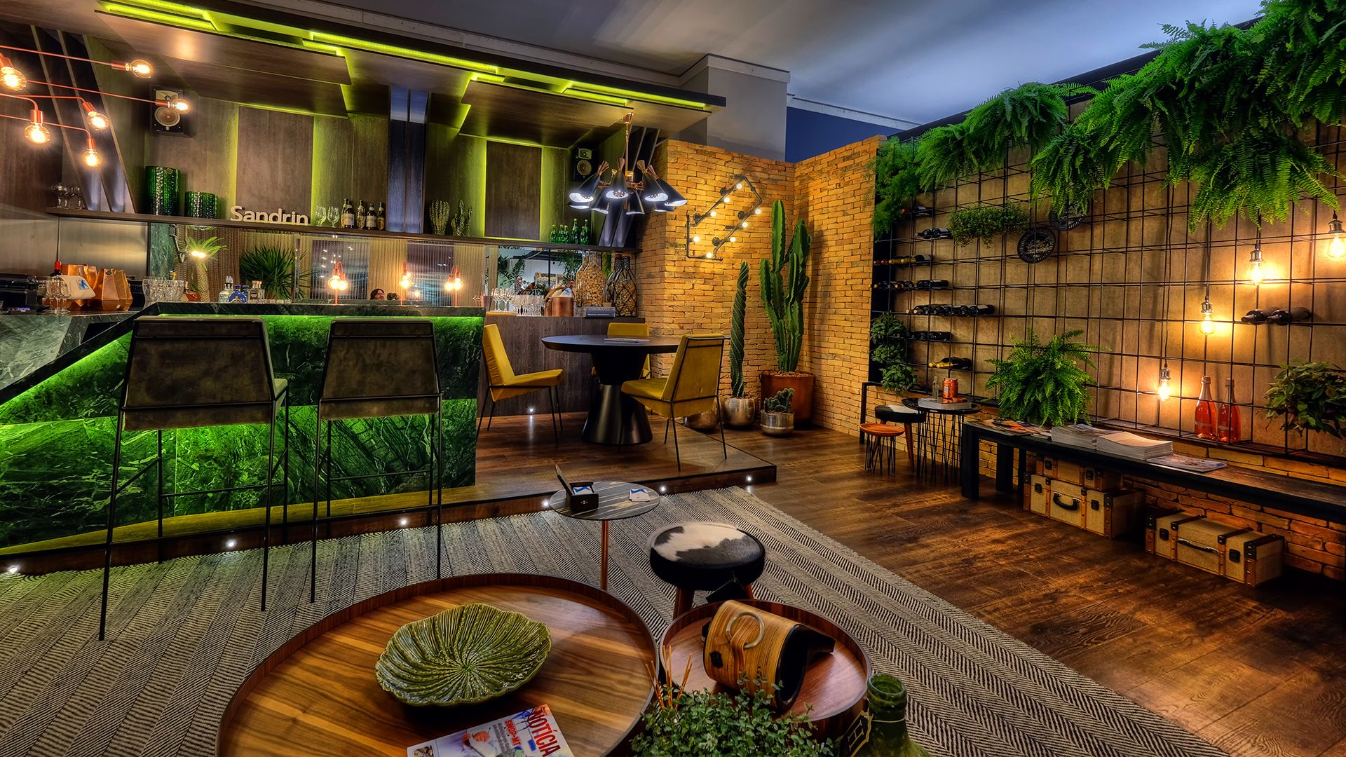 Mas é o segundo ambiente, que encanta e mostra todo o cuidado do empresário com seu público. Ao acessar o piso superior, via escada ou elevador, pode-se verificar a estrutura diferenciada, montada para apresentar a iluminação decorativa e os sistemas de áudio vídeo.