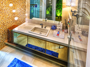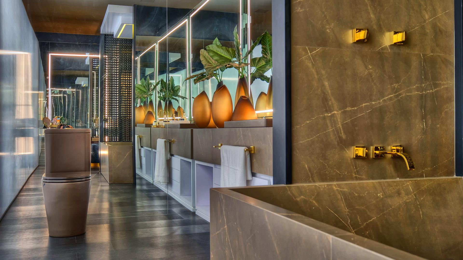 Neste andar está a ‘menina dos olhos’ de Rodolpho, um requintado café planejado para recepcionar os clientes e para que arquitetos e designers possam se reunir com seus clientes para definirem com calma e tranquilidade os melhores produtos, tomando as melhores decisões para a obra.